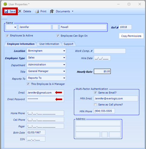 If you are a Google Gmail Customer, use this document to establish email functionality in EverLogic for your employees. Before completing the employee set-up you must review and complete all steps listed in the article, Configuring the Company Email Server in EverLogic.