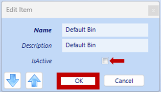 CONSIDER: If you wish to deactivate a Bin Location, "Zero Out" the parts in the Bin and Inactivate Bin Location.
