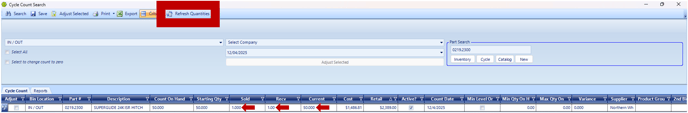 NOTE: The Print option on the toolbar allows the selection of either Print Count Sheet for Selected Bins or All Bin Locations.